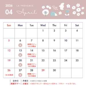 ※ホールケーキは事前にご予約頂ければ火曜日もお受け渡し可能です